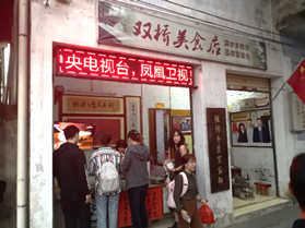 (马会长带领同学们品尝逢简水乡当地的美食)