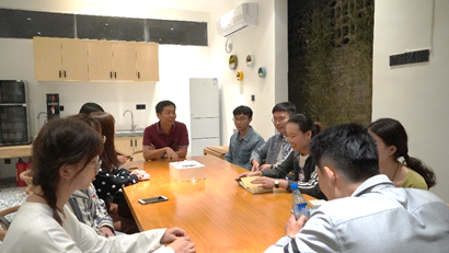 23日早上,同学们早餐后依据前一天学习之后总结的问题和看法,分别与几位老师开展热烈的讨论。
