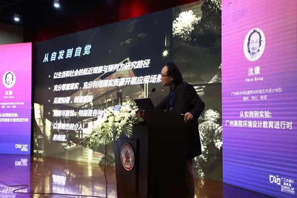 接下来,广州美术学院建筑艺术设计学院院长沈康教授做了《从实践到实验.广州美院环境设计教育进行时》的主旨演讲。沈教授通过对作为我国设计教育的一支重要力量——广美设计教育模式的文脉梳理,澄清了外界强加在“广美设计”上形形色色的误读,可谓一次正本清源、拨乱反正的回应,同时他还着重分享了广州美院环境设计教育围绕“现代性与空间生产”主题所开展的“空间创新”的种种实验性探索,反映了广美设计教育改革的最新成果。