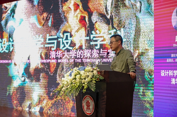 紧接着,教育部高等学校设计学类教学指导委员会秘书长、清华大学美术学院副院长赵超教授以《设计科学与设计学科:清华大学的探索与实践》为主题进行演讲。他为大家介绍了清华大学美术学院对于设计科学与设计学科的实践探索,细致辨析了多学科语境下的“N”型人才、交叉学科语境下的“X”型人才、通识学科语境下的“O”型人才、跨学科语境下的“H”型人才以及超学科语境下的“I”型人才和“M”型人才之间的区别与联系,着重对清华美院的设计学专业人才模式进行了全面总结和提炼,给在座的师生留下了极为震撼的印象。