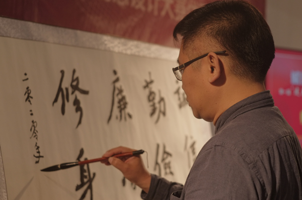 “诚信·勤俭·廉洁·修身”主题创意设计大赛优秀作品展览开幕,并与参会嘉宾一起为获奖者颁奖。