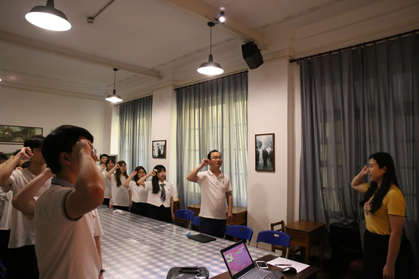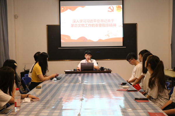 参观结束后,刘芷含老师带领党员同志们在庄严的党旗前重温入党誓词,冯朗老师结合习近平总书记对革命文物工作的重要指示精神为在场师生开展了一堂生动的微党课。他深入解读了革命文物作为红色资源的重大价值以及对于学习党史的重要作用,引导同学们用好红色资源、传承红色基因,讲好红色故事,把红色基因融入血脉代代相传,把革命先辈开创的伟大事业不断推向前进。陈高丰老师号召同学们将红色历史文化与党史学习教育紧密结合,从红色历史文化中汲取奋进力量,砥砺强国之志,笃行报国之行。分享环节,与会同学热情高涨,争相分享了本次参观的感悟与体验,达到了相互交流、相互提升的目的。