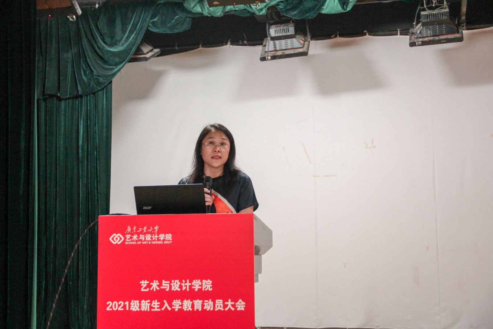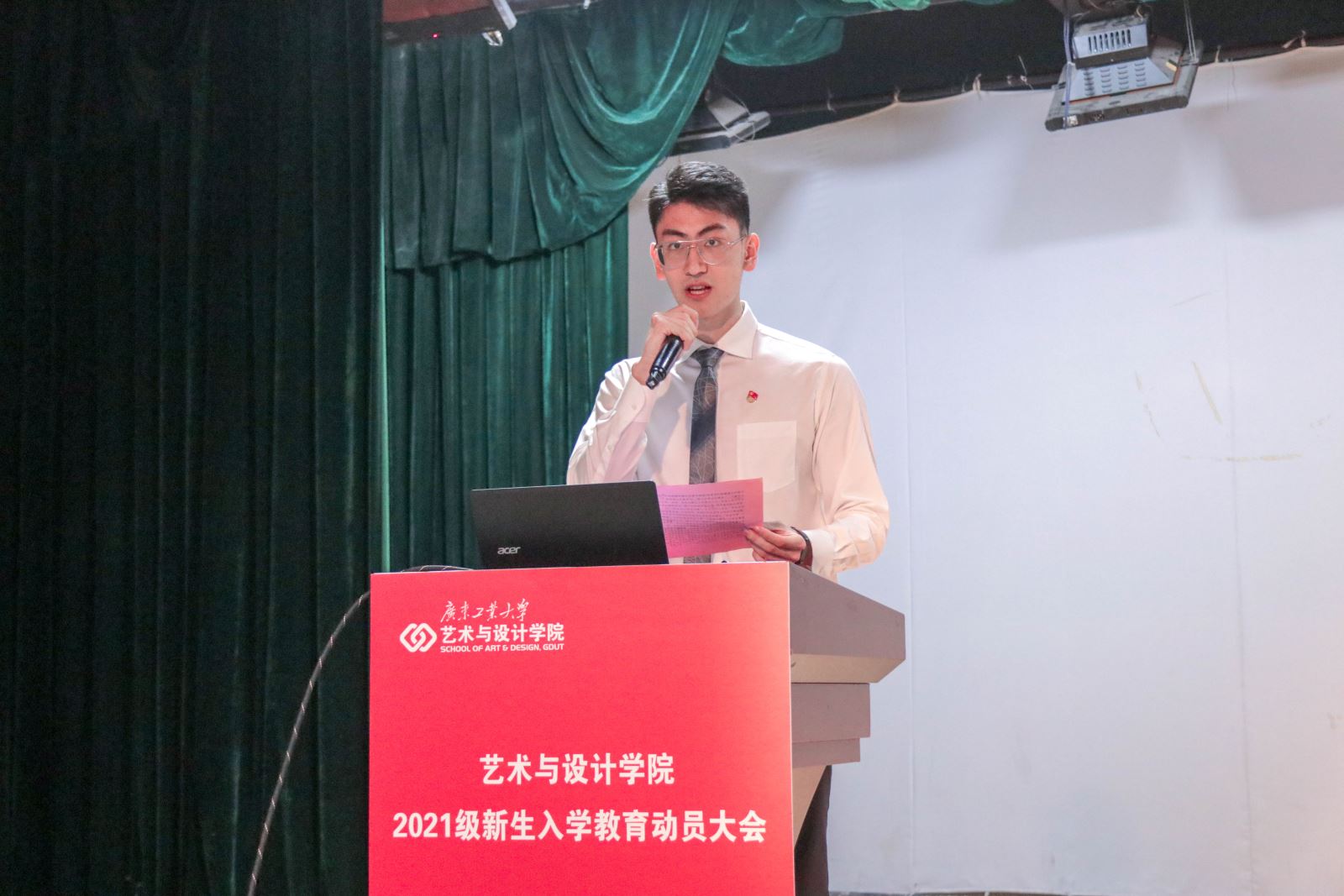 学院副院长汤晓颖教授随后作院情介绍,他从学院发展史、师资队伍、学科优势、科研水平、办学特色、育人平台全方面介绍了学院近年来取得的巨大成就,寄语同学们要立志高远,充分利用资源平台,开展跨学科学习交流,成为具有高度社会责任感、全球视野、创新精神的高素质设计与艺术人才。