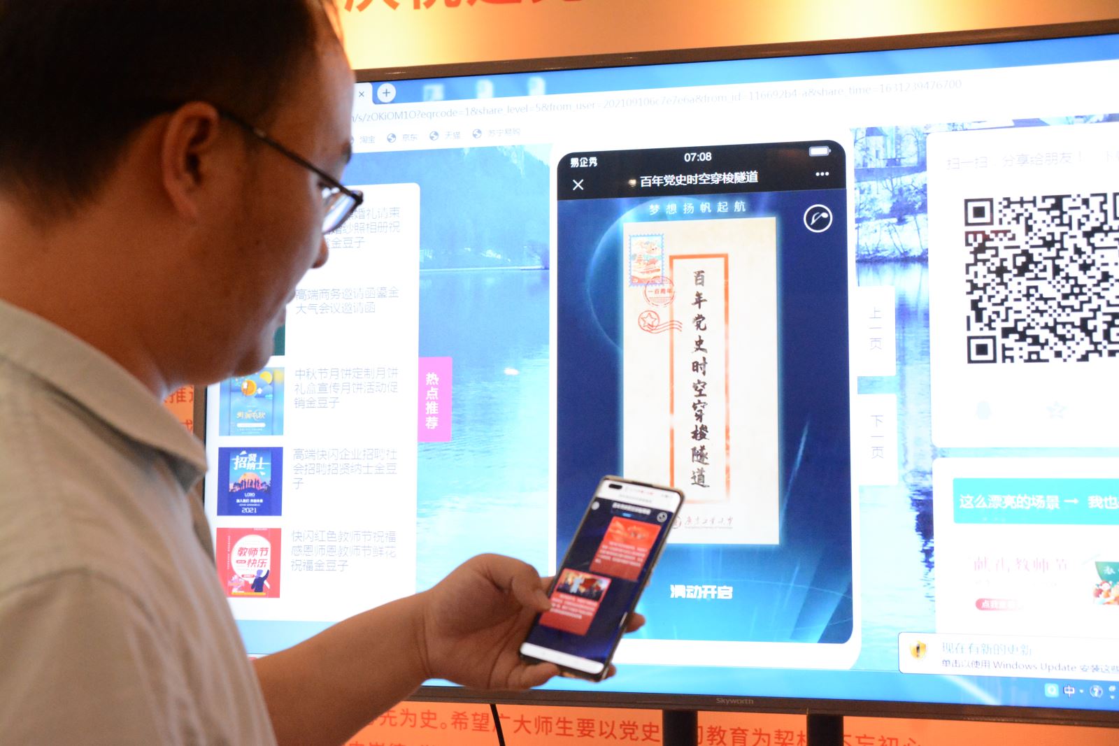教师体验师生开发的H5作品“百年党史时空穿梭隧道”,仿佛置身党的百年辉煌历程,增强党史学习的体验感