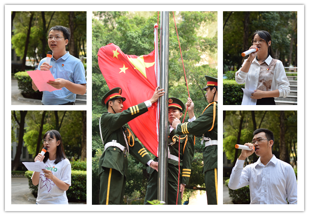 雄壮的《义勇军进行曲》响起,升旗手迎风振臂,鲜艳的五星红旗冉冉升起,全体师生面向国旗庄严肃立,行注目礼,齐声高唱国歌。