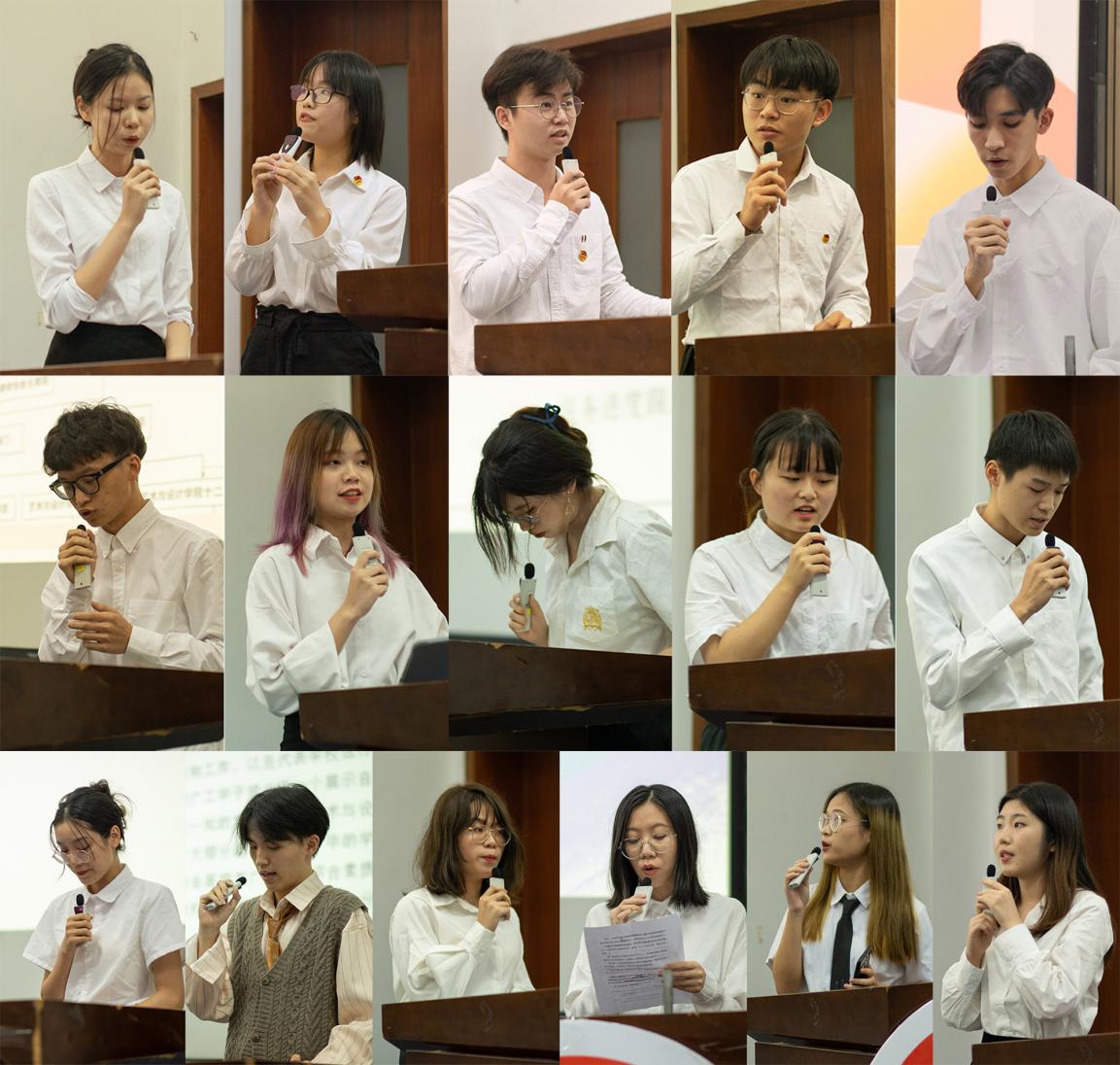 团委负责老师刘芷含上台致辞,她从提质增效、紧抓机遇、团结协作三个方面与新一届团学成员共同回顾过去、展望未来,具体提出三点要求:一是坚决落实共青团、学联学生会改革要求,探索创新模式,强化内外交流,提升组织效能;二是学生骨干要注重自我提升,要心向党、敢担当,追求卓越、树立榜样;三是注重学科、业务、团队、媒体“四融合”,用优异的工作表现助力学校与学院的高质量发展。学生会秘书长冯朗老师以“深悟伟大建党精神,勇担伟大复兴使命”为题作新学期主题团课,引导团学全体成员扣好思想的“第一颗扣子”。他围绕习近平总书记在庆祝中国共产党成立100周年大会上的重要讲话,深入解读伟大建党精神的来龙去脉、具体内涵,号召艺设团学青年积极传承坚持真理、坚守理想,践行初心、担当使命,不怕牺牲、英勇斗争,对党忠诚、不负人民的伟大建党精神,主动肩负起中华民族伟大复兴的历史使命。社团指导老师叶清清详细讲解学院社团管理情况和艺术团、六大沙龙职能定位,提出在学院”大团学”格局下,学生社团与类社团组织在多元化发展的同时,要发挥专业优势,找准团队特色。学院团委副书记童禹琳也畅谈工作展望,期待团学成员把握工作机会、掌握工作方法,于实践中不断学习、分析、反思、总结。