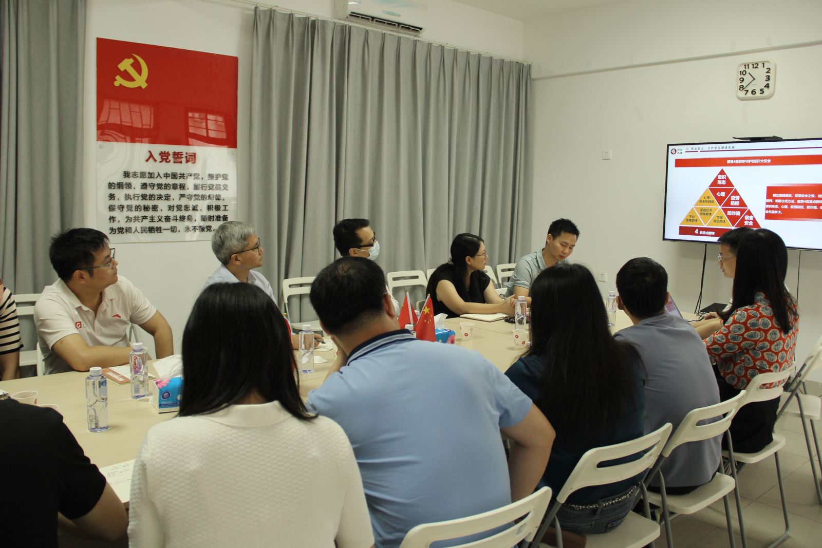 会上,刘琼辉书记汇报了学院学工队伍建设、研究生生源质量提升、疫情形势下毕业就业工作等方面情况,朱可峰副书记从党团共建、社区启航、安全教育、创新实践、“春苗”计划实施情况等方面汇报了学院学生工作以及存在的问题难点。