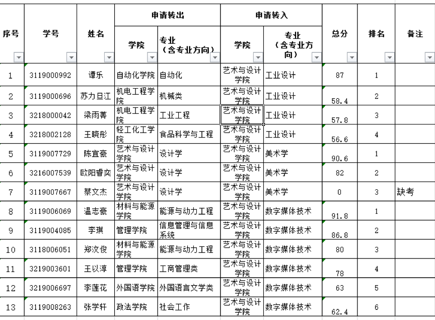 依据《age动漫 本科生转专业实施办法》(广工大规字〔2015〕2号)和《age动漫 age动漫 接收转专业工作方案》的有关规定,age动漫 于2020年5月12日对申请转入age动漫 的学生进行面试考核,现将考核成绩及排名进行公布。