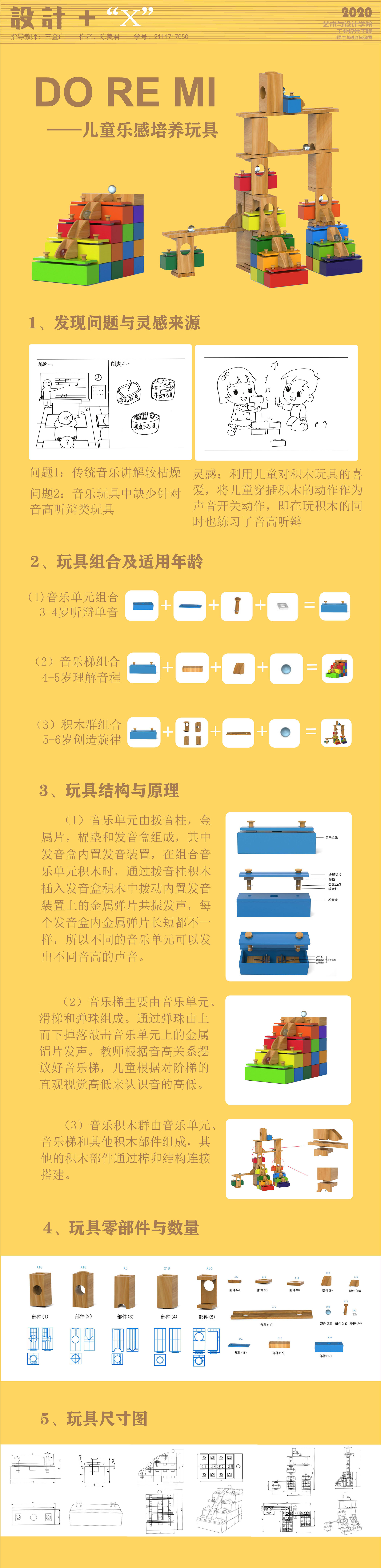 故本课题的设计研究旨在为学龄前儿童设计出一套培养学龄前儿童音高感和提升音乐学习兴趣的音乐积木玩具,希望以此提高学龄前儿童音乐基础认知能力,培养其对音乐学习的浓厚兴趣,让学龄前儿童能够更好地“玩中学,学中玩”。