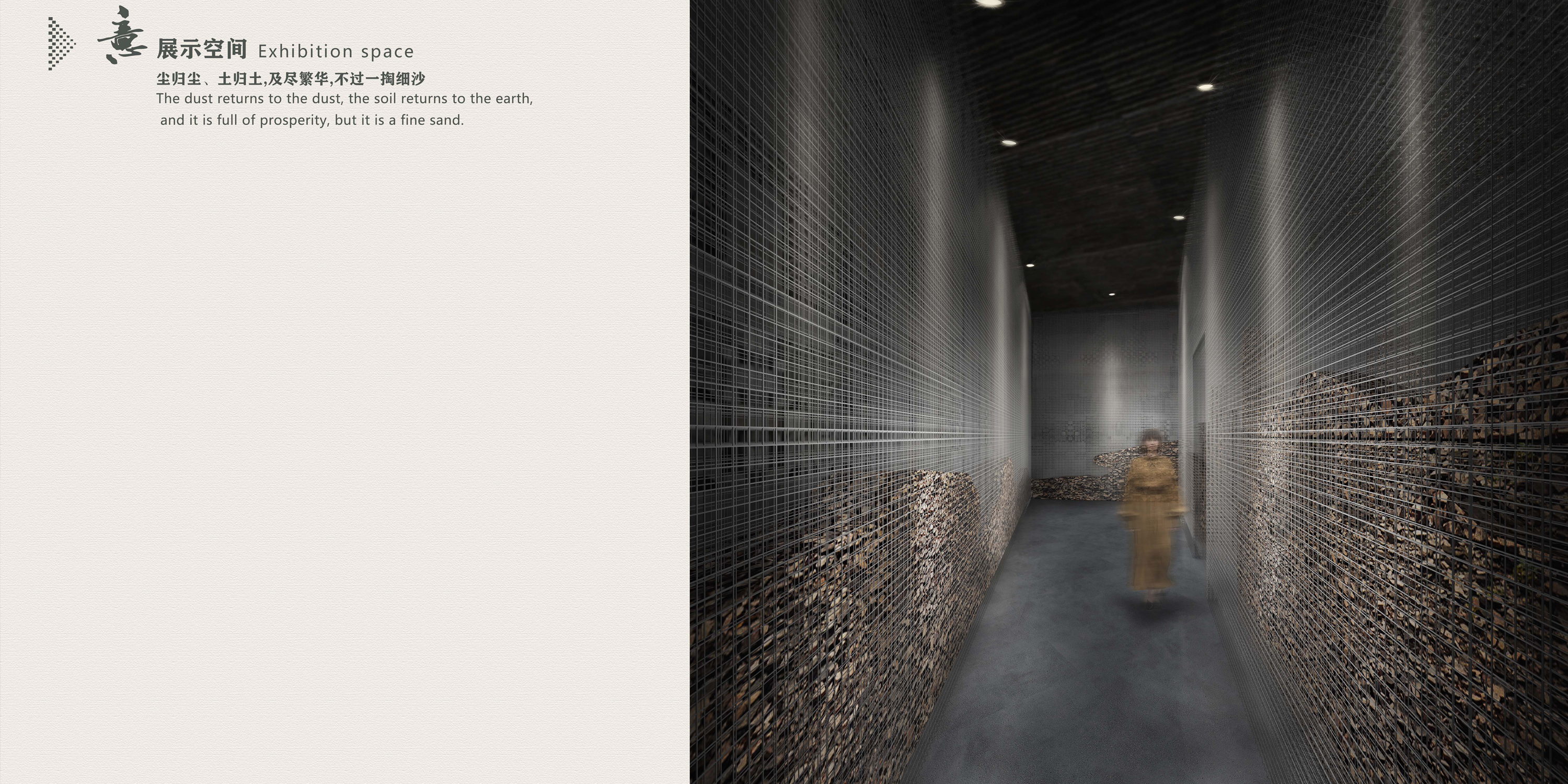“青瓦长忆旧时雨,朱伞深巷无故人”当时的瓦已不在,何处寻故人?我们想打造一片瓦园,不仅仅是满足 建筑与空间的现代化,而是表现瓦在其自身使命下的精神性继承。通过对瓦片的物质属性与结构属性进行剖析,运用瓦片不同的构筑纹理在不同环境中产生的体验效果,打造“触动回忆、时光渐冉、情景再现、危机体验、押击心灵”等抑扬顿挫的空间体验,将瓦拉回到人们的视野,让其能“细水长流”。此园让人们感受当下美好的同时,也会产生思想的碰撞,唤醒人们对瓦片的记忆,与此同时去思考瓦片在未来建筑空间中如何传承与创新。