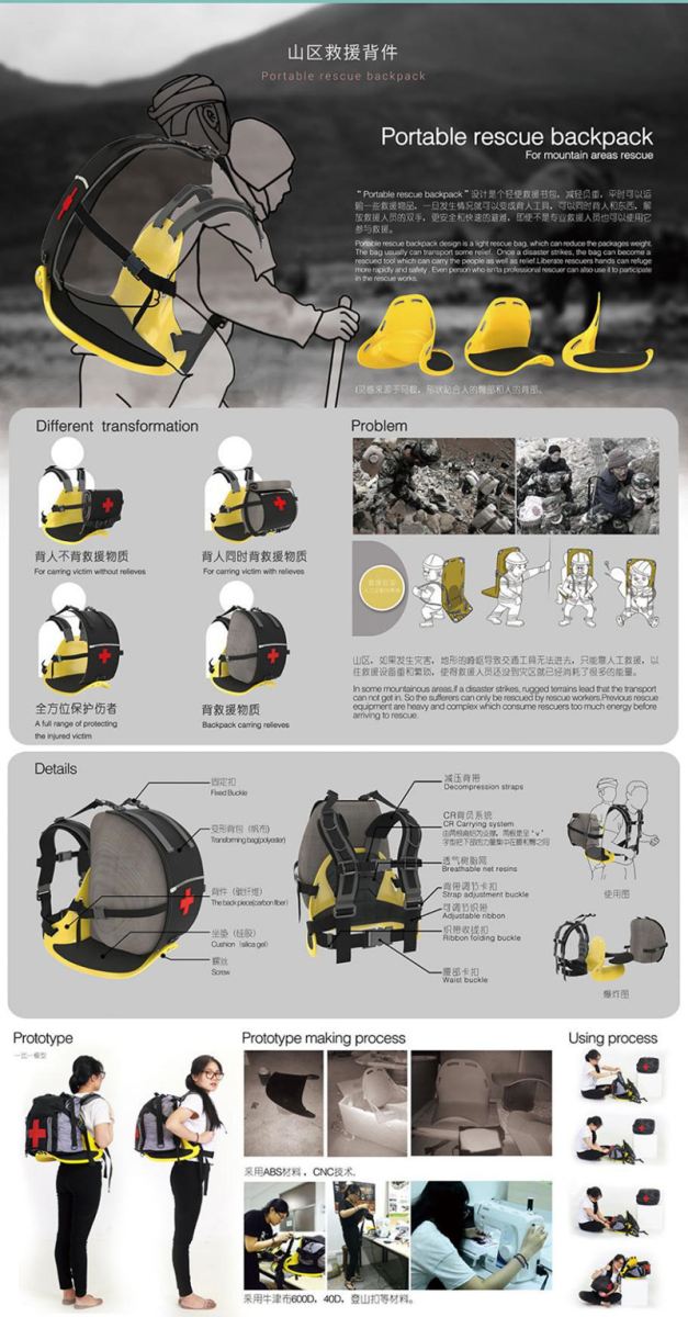 红点奖 获奖作品2:Portable rescue backpack/山区救援背包