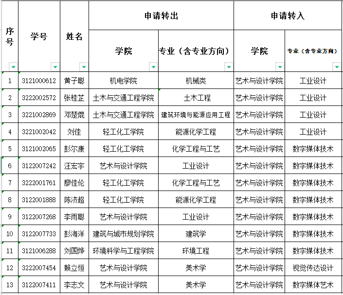 各专业学生的资格进行审查,现将通过面试考核资格的学生名单公布如下: